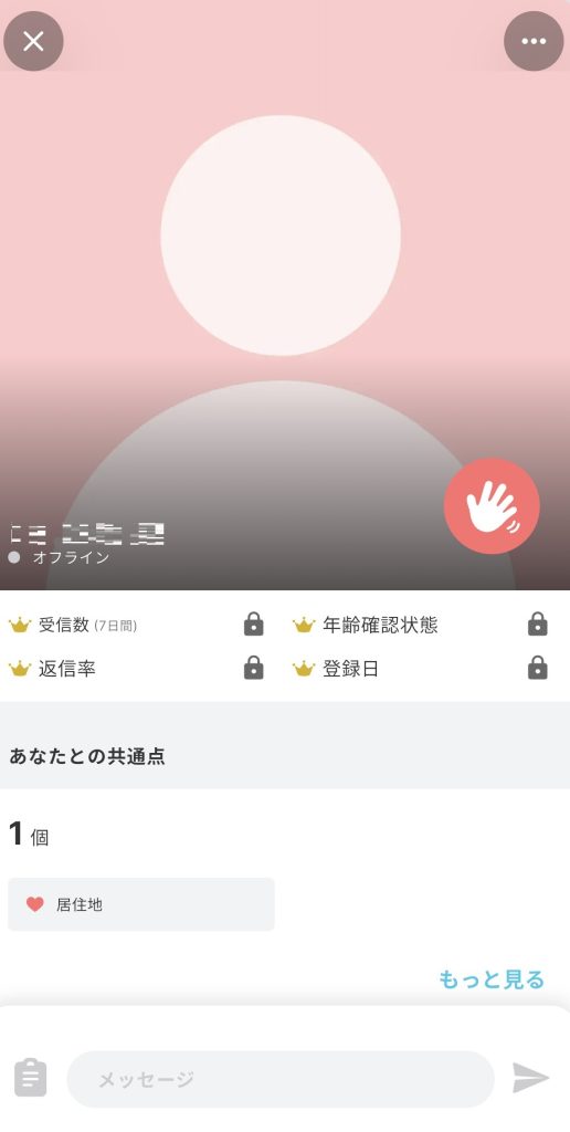 気になる女性をタップすると、相手のプロフィール欄に移動します。