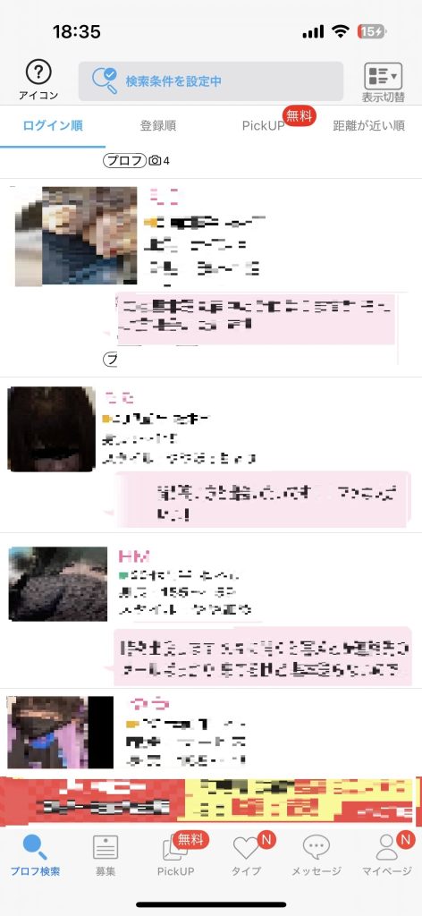 検索欄から地域や年齢(広めにとる)でプロフィールを検索しましょう。
